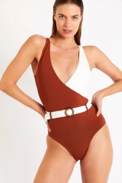 Maillot De Bain 1 PiĂšce Bi-couleur Marron Et Blanc MARIETA AUKANA