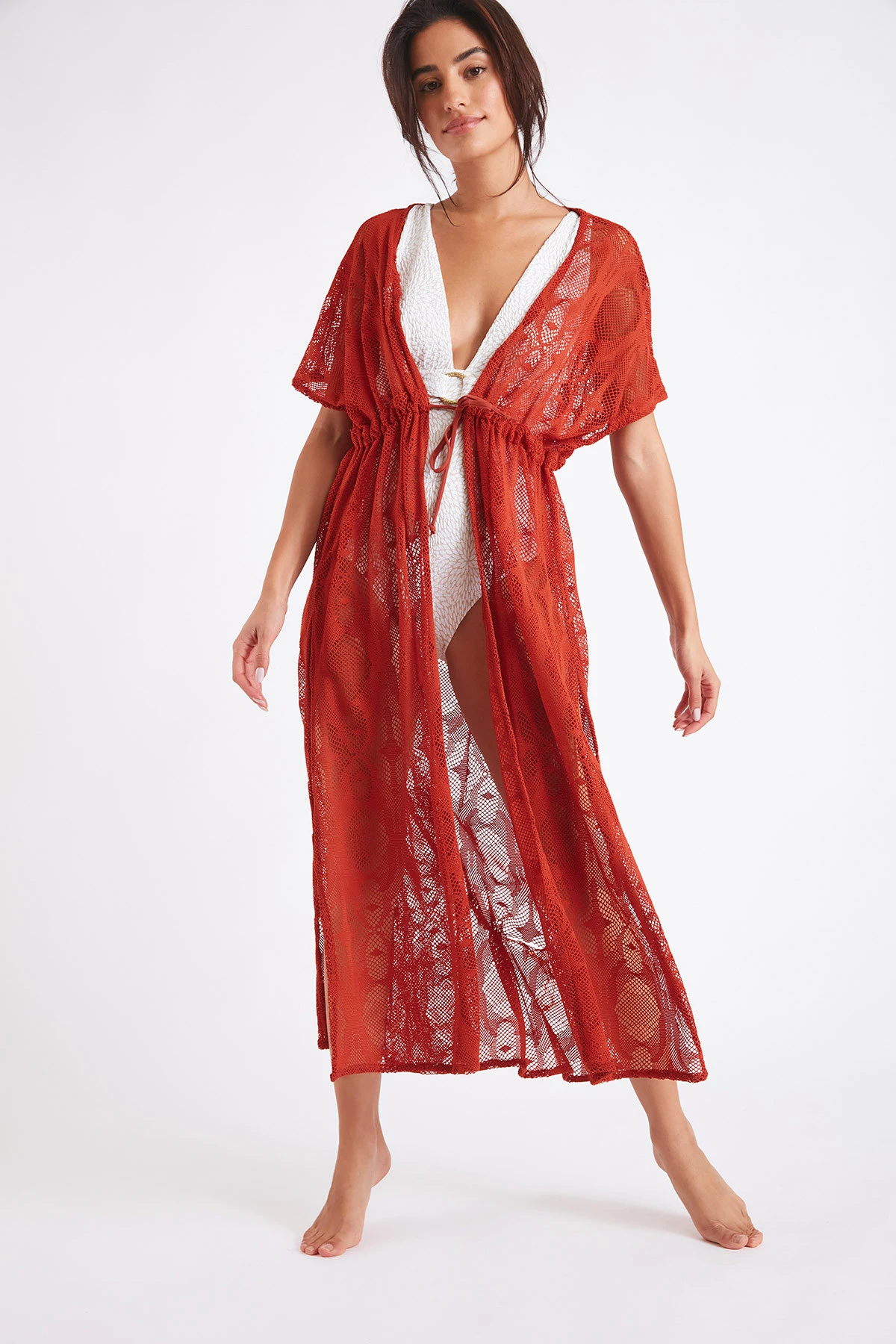 LégÚre et agréable à porter, adoptez cette tunique pour un look décontracté et tendance. Son esprit crochet ainsi que sa coupe fendue sur les cÎtés mettra en valeur votre silhouette. Grùce à son lien à la taille, vous pourrez la porter ouverte ou fermée sur votre maillot de bain Livia favori !